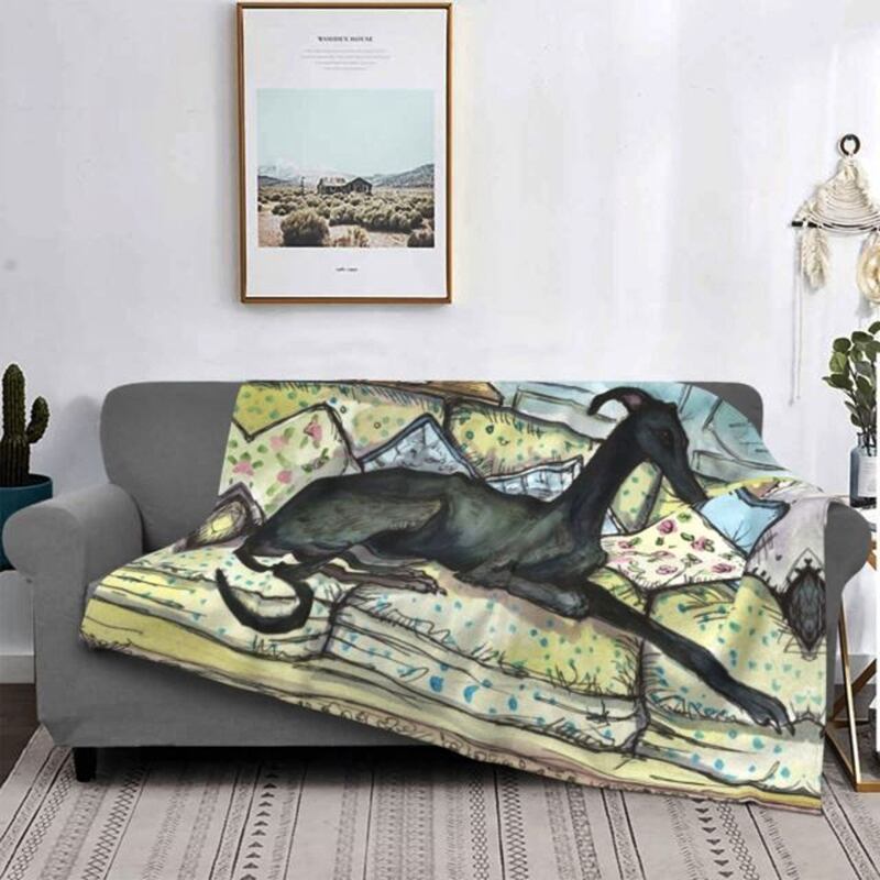 グレーハウンド柄のブランケットです。ソファーカバーやベッドカバーとしても使用出来ます。