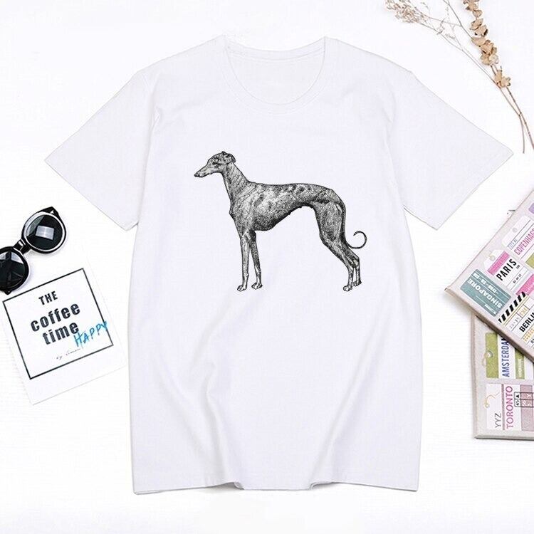 - 女性用グレーハウンドのプリントTシャツ O01-047